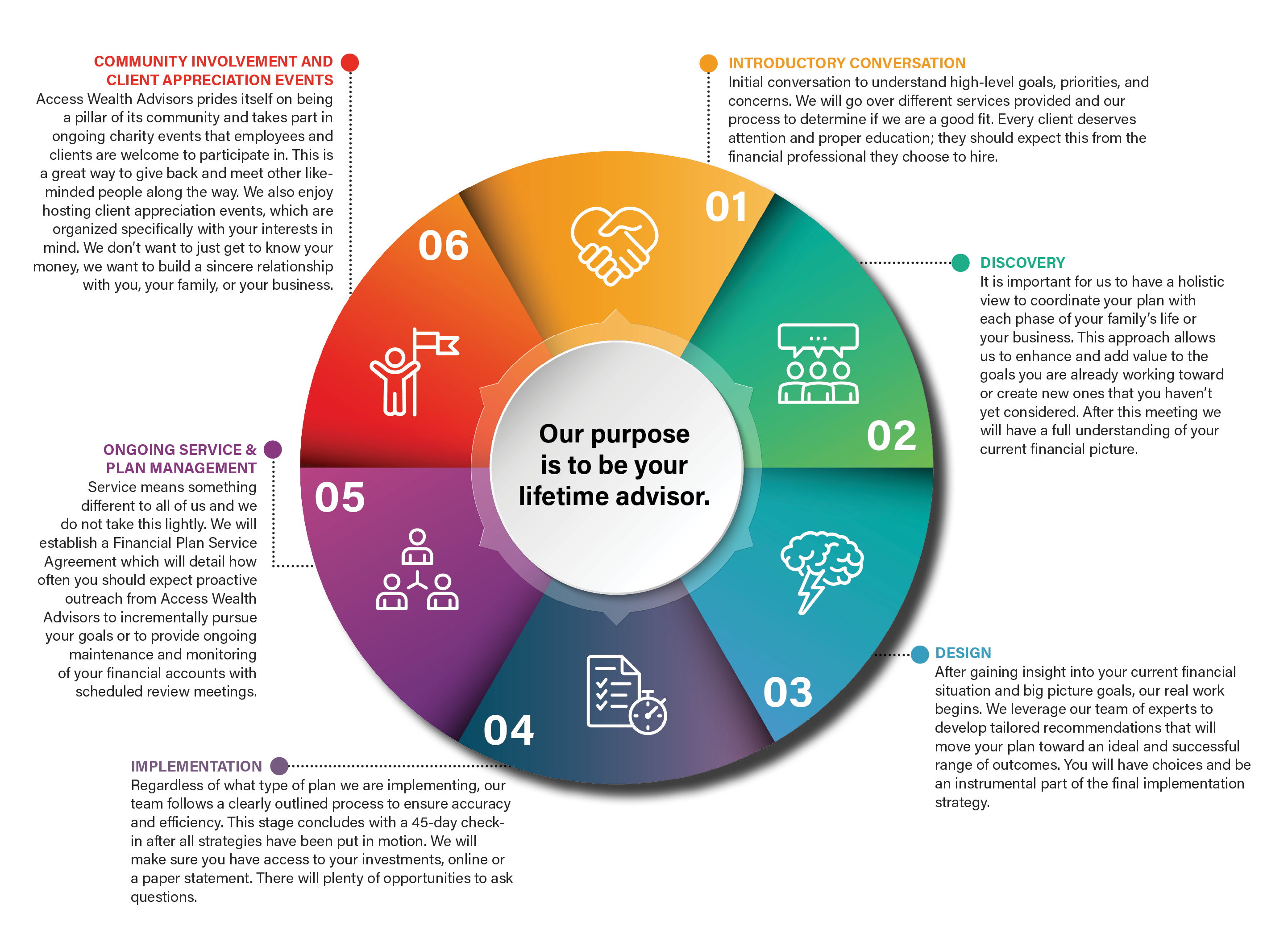 The financial planning process is a collaborative engagement. Your financial advisor will consider all aspects of your financial situation when formulating planning strategies and making recommendations.